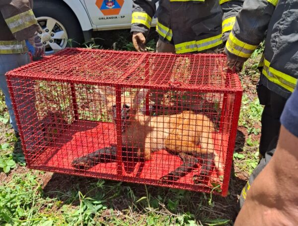 Defesa Civil e Corpo de Bombeiros resgatam lobo-guará atropelado entre Orlândia e Morro Agudo