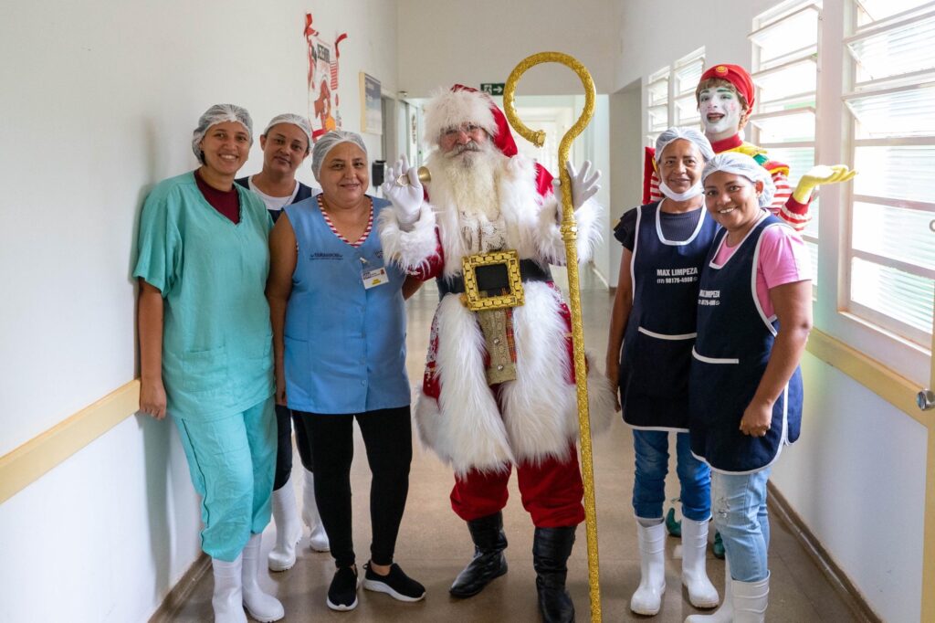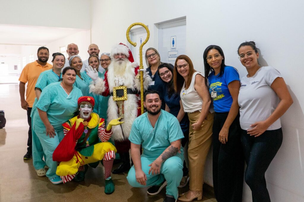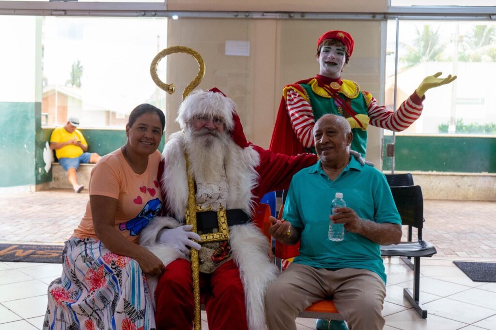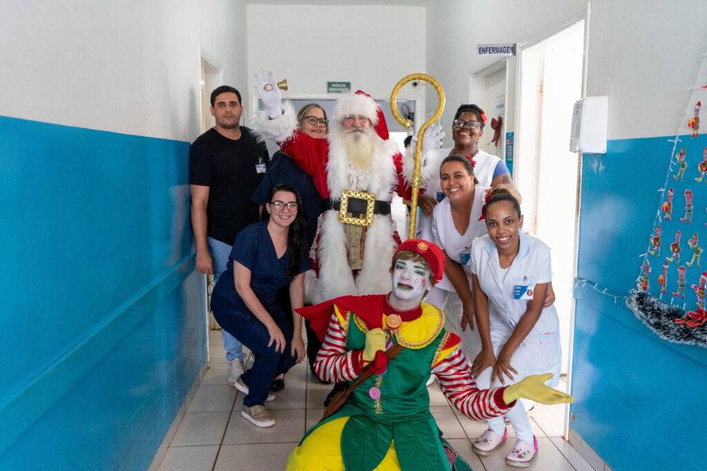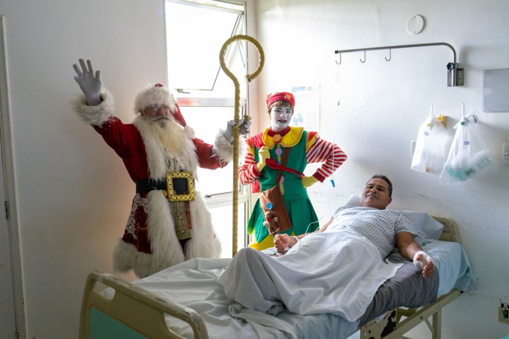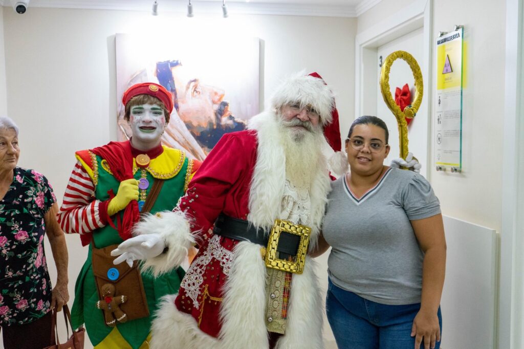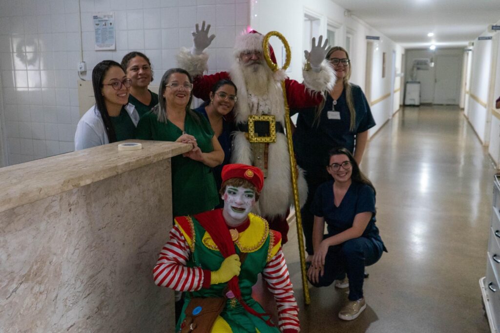 Nesta quinta-feira (18), o espírito natalino tomou conta do Lar Feliz, do Nucleal e do Hospital São Marcos com a visita especial do Papai Noel e de seu ajudante. A ação levou alegria, afeto e momentos de descontração a crianças, jovens, adultos e profissionais que atuam nesses espaços de cuidado e acolhimento.