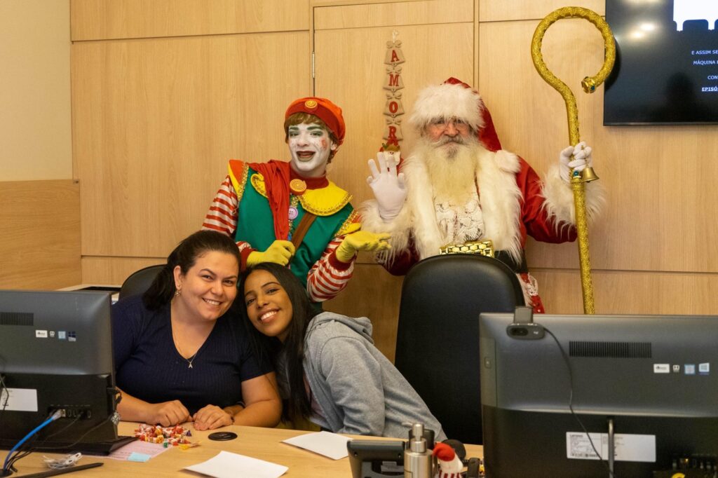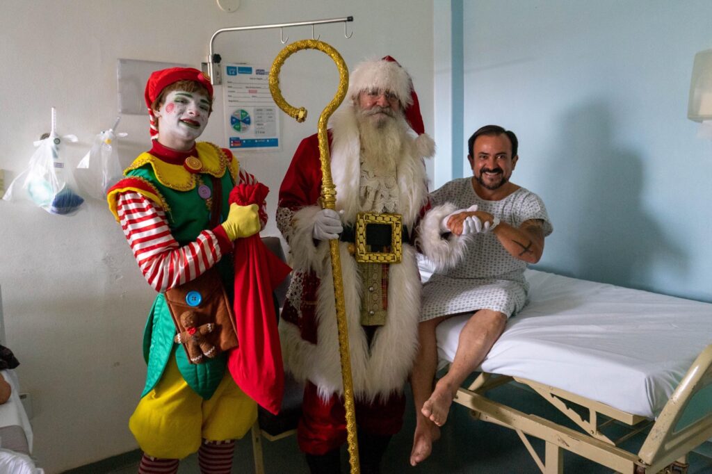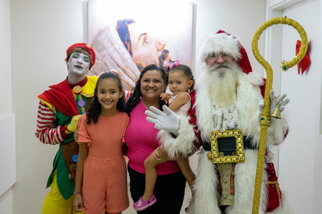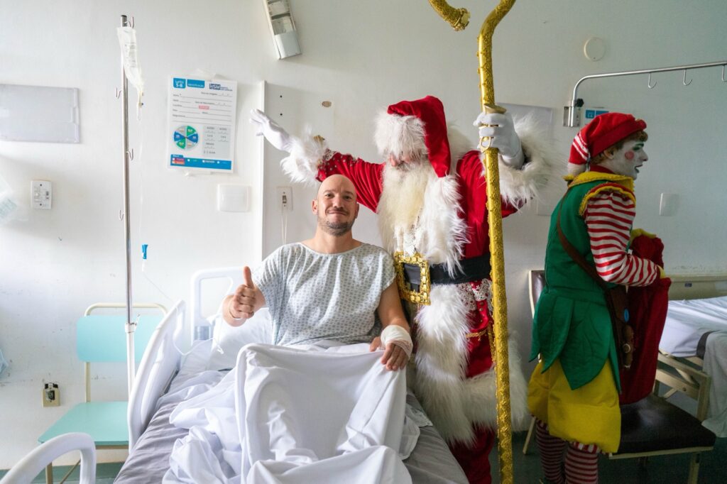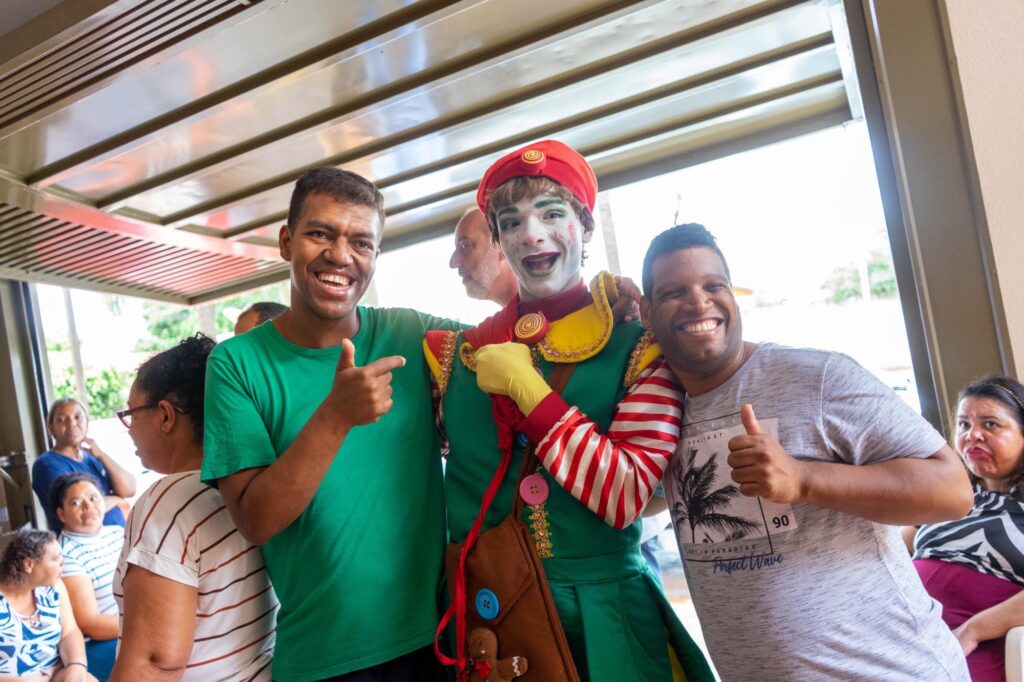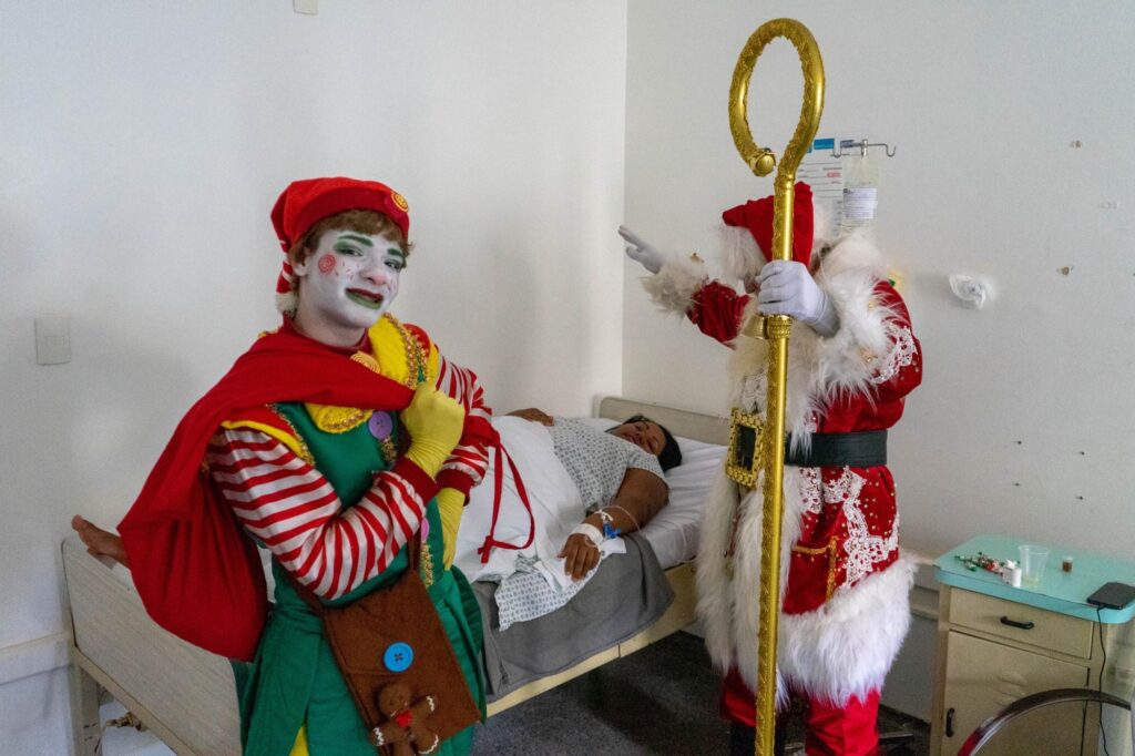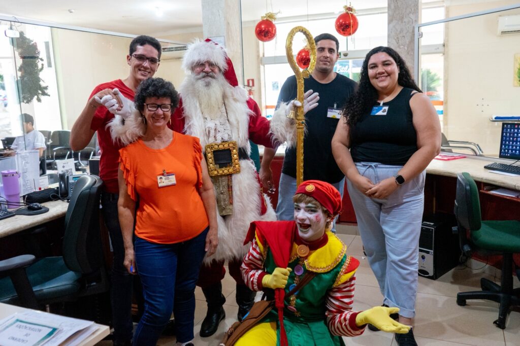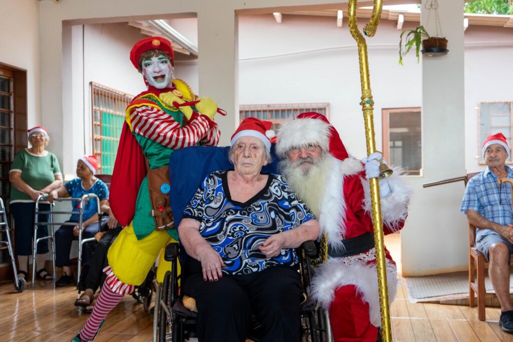 Nesta quinta-feira (18), o espírito natalino tomou conta do Lar Feliz, do Nucleal e do Hospital São Marcos com a visita especial do Papai Noel e de seu ajudante. A ação levou alegria, afeto e momentos de descontração a crianças, jovens, adultos e profissionais que atuam nesses espaços de cuidado e acolhimento.